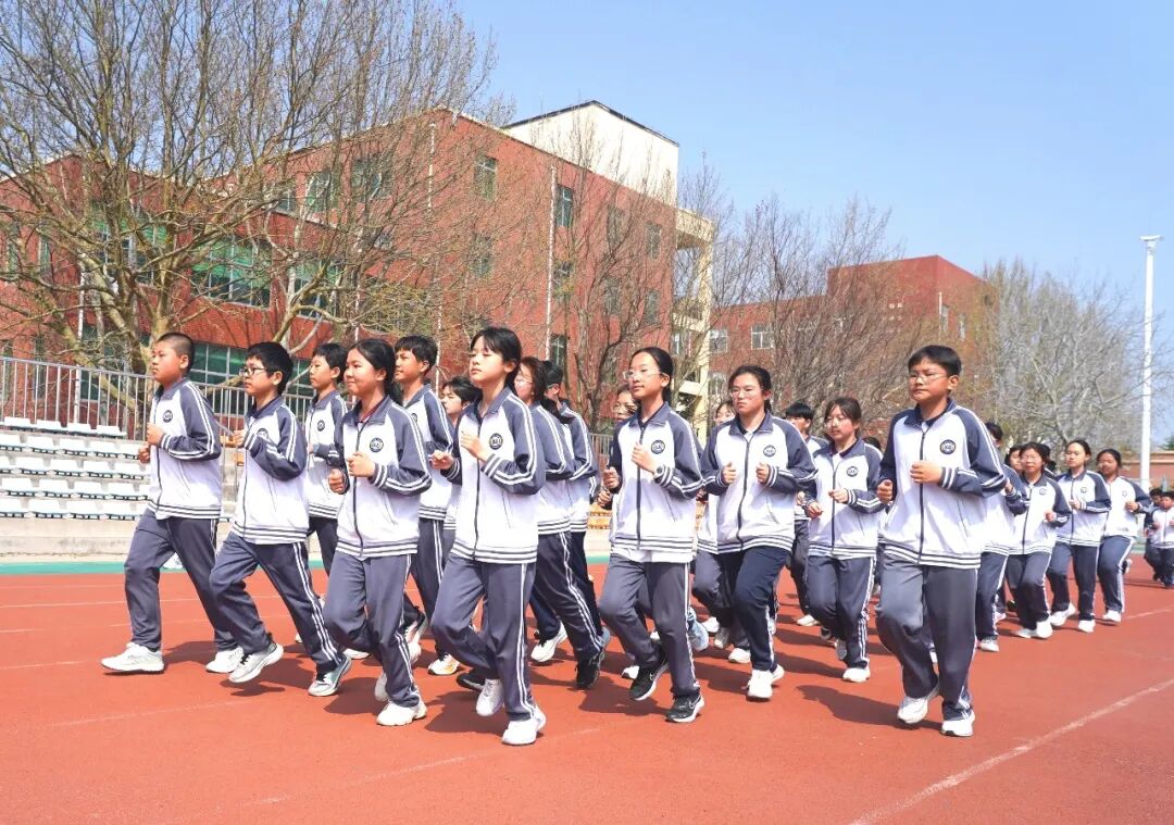 上午9点45分,威海市第十四中学的大课间同样热火朝天。伴跟着清脆的标语,学生们队列划一、程序铿锵;立定跳远、50米跑、引体向上等项目有序开展,处处展示不服输的芳华朝气。